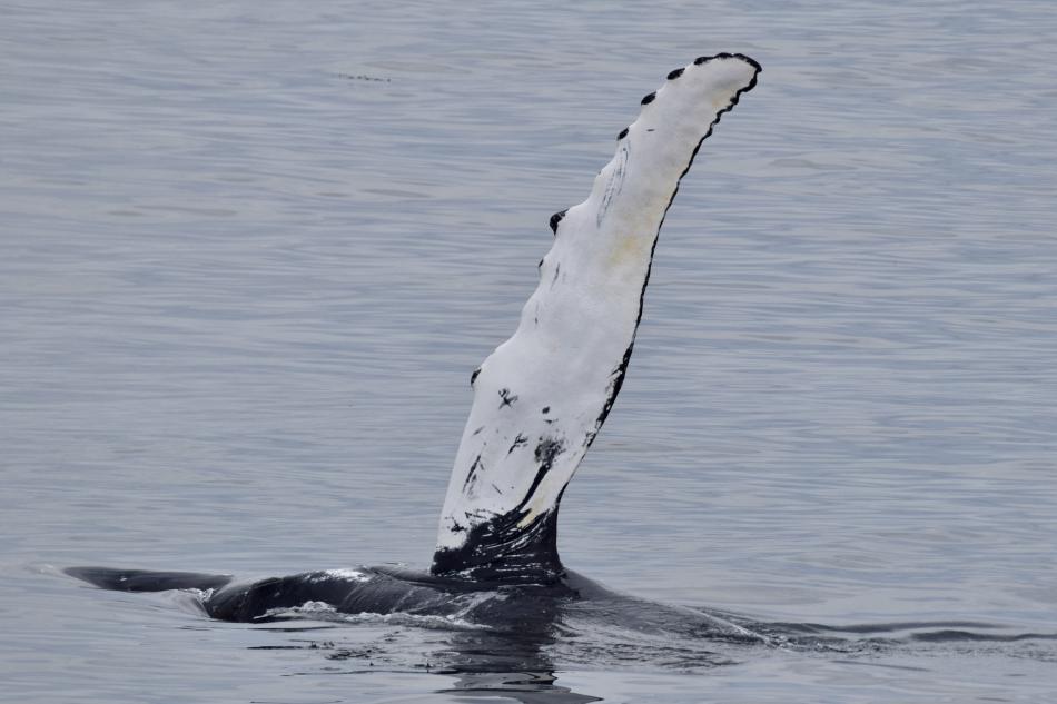 Report from Elding: This evening we sailed out onto a very calm ocean, there was almost no wind and a few clouds in the sky. On the way out, we spotted a pod of 6 white beaked dolphins. They were very playful and came very close to the boat. Then, we decided to go a little bit further out onto the bay. On our way out we saw a few minke whales and we could take a good look at them as we were sailing. Later, we found our first humpback whale, it came very close to the boat. Then on the distance we saw another breaching humpback. But when we got there, it stopped doing it. But at least we could take a good view of its beautiful fluke every time it went for a deeper dive. Sadly, we had to say goodbye to all these bautiful whales and go back to port.