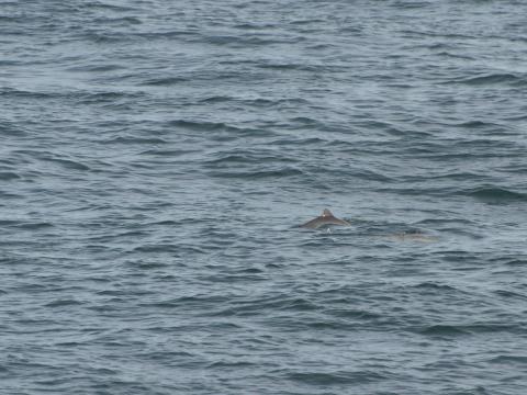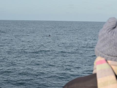 Tour at 13:00Report from Hafsúlan: The sky was only slightly clouded and we enjoyed the sun the whole tour through. The water surface still looked quite smooth with very little wind even the boat was constantly going up and down in the swell. We saw some bird life and the most impressive was a huge flock of brent geese flying landwards crossing our way. After not too long, some splashes at the horizon caught our attention. We sailed towards our first of four sightings of white-beaked dolphins which were spread out over the bay in different pods and subgroups of around 20 individuals in total. Several times we saw them leaping and breaching partly synchronous further and closer. After we spent quite a while surrounded by dolphins we searched for something else and we got to an area with 2 minke whales and 4 harbour porpoises. One of the porpoises was a calf in the middle of the adults. This pod has been milling around one minke which we observed for a while while he was probably feeding. Once he created white water as he probably moved abruptly under the water. The second minke was a bit further away but once up short after the other. A very successful tour with 3 different species of cetaceans which we could all watch well.