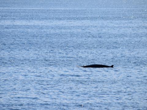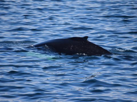 Report from Eldey: We had the same great weather that we've had all day but it had gotten a bit colder so the over-alls came to good use. We started sailing to the same place where we last spotted a humpback and encountered about 4-6 white-beaked dolphins. They were jumping around and splashing in the water which was very fun to see. They were kind of elusive inbetween the splashing and when we hadn't seen them for some time we decided to keep looking for the humpback. We spotted maybe 8-10 harbour porpoises during the tour but they were very elusive so we didn't stop for them but just enjoyed them as they were passing by. Then we spotted a blow behind us that turned out to be a humpback whale, it surfaced a few times and we were lucky enough to see it raise it's beautiful fluke which was the perfect ending to a good tour and a great day.