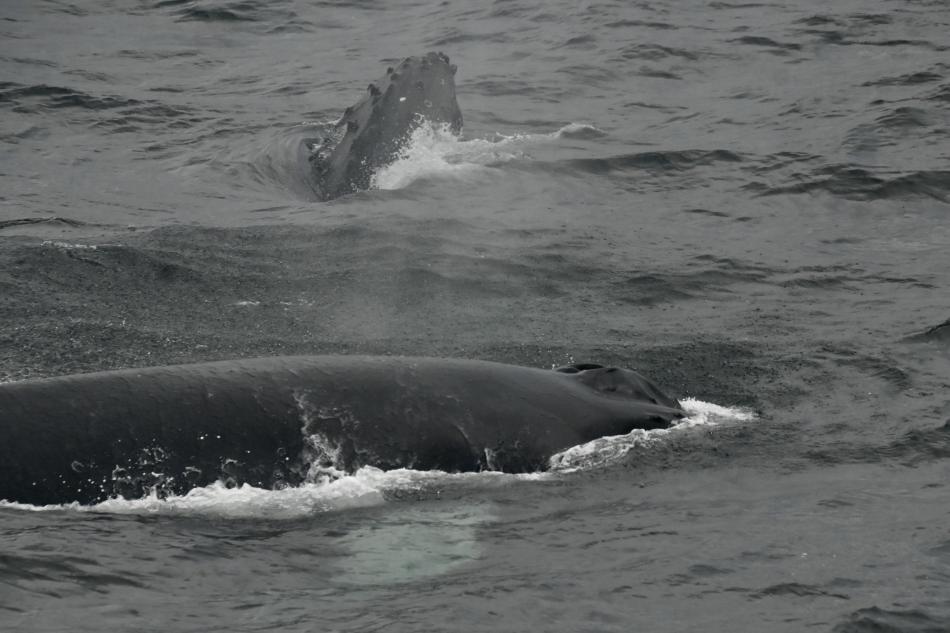 Today, we sailed out into the open waters of Faxaflói Bay, the light rain didn’t dampen our spirits, and as the wind started to ease, the sea calmed, making for smoother sailing. After about 45 minutes of sailing, we were rewarded with our first sighting: a minke whale! But we had heard there were humpback whales in the area, so we pressed on, determined to catch sight of these giants. Our patience paid off. We spotted the first blow of a humpback whale in the distance! We approached cautiously and 2 humpback whales resurfaced in synchrony. Suddenly, a massive pectoral fin emerged from the water, waving to us ! We stayed with these two for some time, watching them fluke multiple times. Off in the distance, a third humpback whale appeared, and we could see minke whales resurfacing now and then, adding to the spectacle around us. As we prepared to head back, one of the humpbacks tail slapped the water close to our boat! It was the perfect finale, followed by one last graceful fluke dive! We sailed happily back home after an extraordinary encounter with the whales of Faxaflói Bay.