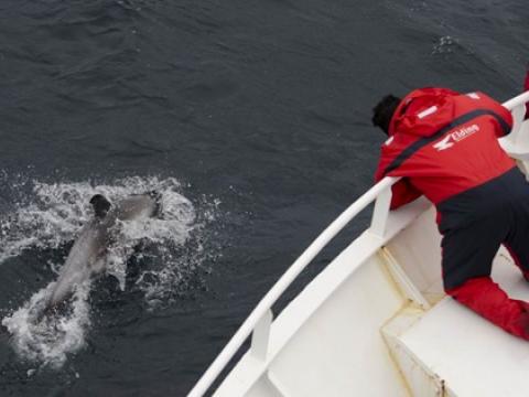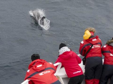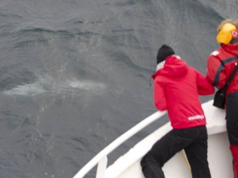 Tour at 13:00Report from Hafsúlan: we headed out from the harbour in Reykjavík and started the tour with a visit to Akurey, the Puffin Island where we saw the Atlantic Puffins (along with other birds of course) the Island was crowded with life and we got a good look at the animals. As we sailed further out searching for whales we saw some Northern Gannets diving down and feeding, which is always amazing to see! very soon we saw 2-3 Harbour Porpoises which surfaced around three times close to the boat, of course these animals are very small and hard to spot, but hopefully some of the passengers saw them. After searching for almost 2 hours with out any sightings we were almost losing hope when a pod of White-beaked Dolphins jumped up in front of the boat, what a perfect timing. There were a few pod's of animals there and maybe 10-15 dolphins. We watched them surface and jump around and we were amazed as they swam under the boat and surfaced just beside us. As we were watching the White-beaked Dolphins we saw 3-4 Minke Whales surfacing, but each one only surfaced one time and not all of the passengers saw them, but at least we know they are in the area!Great tour in icelandic adventure weather with the White-beaked dolphins. Always fun seeing how unpredictable nature is.- Freydís Ósk Hjörvarsdóttir