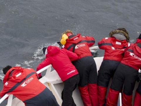 Report from Elding: A little bit windy on this tour but this weather seems to be enjoyed by the marine animals as they love to glide on the air currents or surf the swells. It is however a little bit challenging for the crew as sometimes the whales are hidden by the waves and they surface faster, we like a challange but this tour did prove quite difficult. We saw many blows (exhaled breath that looks like geysirs coming up from the sea) on this tour but the whales themselves. It wasn't until near the end of the tour when we found a big flock of Gannets plunging into the ocean for food, we were enjoying this when suddenly a Minke Whale came out of nowhere and surfaced just 20 meters in front of our boat and then a few times next to us but a bit further away. We ended the tour at Akurey to see the puffins and there were thousands to see. Slow start but a fantastic finish.