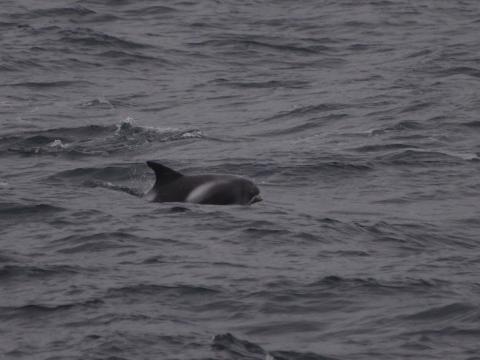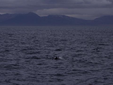 Report from Hafsúlan: Once again we had southeasterly winds so the sailing out was lovely and warm, we sailed straight to the areas we encountered a humpbacks yesterday but unfortunately the humpbacks had moved on. We had sailed for a long time, over half the tour had gone by with only short glimpses of swimming and flying seabirds. We did get a short encounter with a pod of 5-7 harbour porpoises which was nice but as we were starting to head back towards Reykjavík a passenger spotted a pod of white-beaked dolphins, 4-6 individuals surfacing together and even started to play under and around the boat for a while. We were also really happy to see a mother a calf, a baby dolphin that looked less than a week old. It was so cute. We stayed with these a while before continuing our journey home. It was a cold ride on the way home so most staying inside to keep warm and even ordered our speciality ´whale punch´which is hot chocolate with rum to warm the hearts. It the end turned out to be a very nice tour but lets hope the big whales will be back soon.