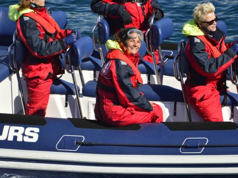 Report from Eldey: Is this Iceland ? Is this real life ? Anyway, if this is a dream please don't wake me up ! Again today a calm sea and sunny weather, almost all the week ! The operation is simple, nice weather equals nice sailing, we had to face off a little bit of wind and rain at some point but it quickly went away. So our departure was optimistic, and not even 15 minutes after leaving the harbour we saw a humpback whale ! It seemed busy and determinate, as it was taking regular long dives and surfacing shortly, heading to the west. We got few quick looks, then we decided to head further away, hoping to find other species or maybe easier individuals. We had to navigate for one more hour before we heard about other species, and we finally meet a large pod of white-beaked dolphins, about a dozen of them ! We approached very slowly, they were often changing direction, sometime speeding up, what we acknowledge as a potential feeding behaviour. When we finally got close, the sun was lighting them, displaying a hypnotic contrast between their black and white colors. A magnificent sight ! When time was running out, we headed back toward home. There was no more animals to be sighted, but the sun was warming our back for an easy and comfy cruising.