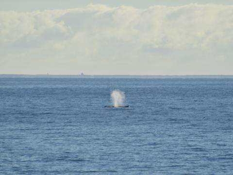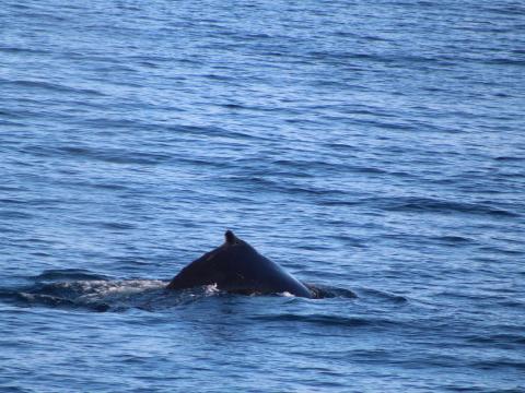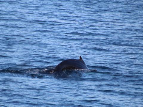 Report from Eldey: Today was beautifully sunny day with no waves and excellent visibility, perfect spotting conditions. We had to sail out a bit far out in the bay to find cetaceans, but we enjoyed in different bird species and landscape on the way. We saw a minke whale, surfacing 3 times. It was traveling pretty fast but we all had a good look at it. While waiting for minke to surface up again, we spotted a blow of humpback whale in the distance. This individual was diving for long time and when surfacing, would take just one breath before going to deeper dive. This behaviour, together with fish we saw on sonar, indicated it was feeding in deeper layers. We saw it surfacing few times, once very close to the boat, and nicely fluking up every time, so this encounter was really nice. We even had a glimpse of a harbour porpoise, which surfaced few times just next to the boat while we were waiting humpback to surface up.