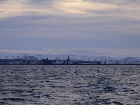 Report from Eldey: Today the sky was slightly cloudy but the visibility still very good. Cold wind blew strongly from the east giving us some extra push when starting our tour. Our captain decided to take a turn around Engey which is one of the small islands located close to the old harbor of Reykjavik since we had spotted some dolphins in this area very close to the land in the last days. And also today, we found a great pod of 5-7 white-beaked dolphins, just after we passed Engey. In the beginning the dolphins stayed in some distance to the boat chasing after some prey. But after a few minutes watching them further away, they decided to come closer to the boat. We spotted at least two calves among them. They seemed to still be very young as they appeared to be tiny compared to the biggest of the dolphins in the pod. We watched the dolphins for about half an hour wave riding, breaching and even approaching the boat, so that we got to see them in less than 10m to our vessel. After this great encounter we decided to leave this group when another whale watching vessel joined us. Due to the strong wind from the east we stayed close to the land to not have to face any bigger waves and sailed north west looking for bigger whales towards Hvalfjörður and Akranes. We found another pod of 3 white-beaked dolphins. But this pod did not seem to be in whale watching mood and only surfaced 3 times before disappearing. Thus, we decided to head further out. Although we covered quite a big area, there did not seem to be any bigger cetaceans around this afternoon. So, facing the strong wind on our way back, we still enjoyed the great view and kept the beautiful dolphins in mind.
