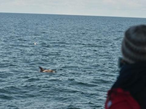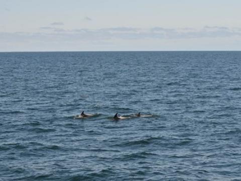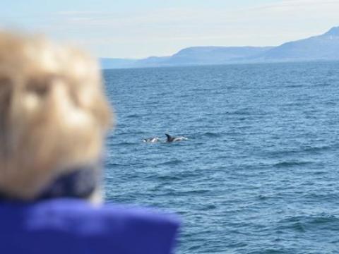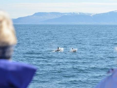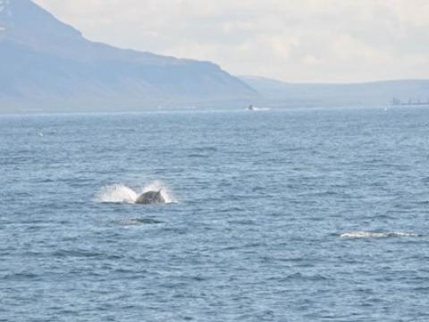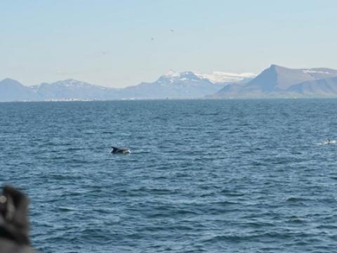 Report from Hafsúlan: As we sailed out into a peaceful evening in the bay, the sun was still shining through the clouds here and there. It did not take us too long to find our first Minke Whale, but unfortunately it was moving very quickly and disappeared before we got a close look. The next individual we found was not in a better whale watching mood either, so we kept moving on. And finally we found a minke whale that surfaced close to the boat a couple of times, offering some nice looks at this species. We then moved a bit further and met a pod of White-Beaked Dolphins (around 5-7 individuals) who also gave us a nice look while surfacing close to the boat. On the way back we crossed the path of another minke whale before enjoying the calm evening air for the rest of the trip. All in all a very successful day! - Linda