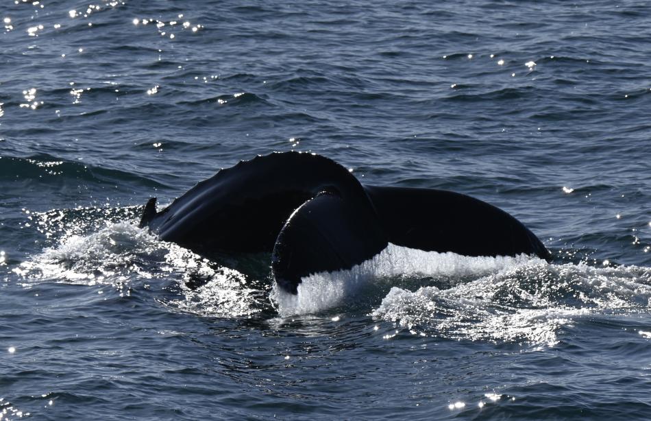 Report from Eldey: the sun was shining bright this morning as a soft breeze was rippling the near-flat ocean surface. We sailed around for some time until we ran into a familiar fluke. the humpback whale "Bubbles" was swimming around in the bay. It was travelling at quite some speed as we travelled along with it, crossing the bay for a distance of about 6 miles! Along the way we got to see some nice surface sequences and fluke dives, multiple times right next to us! What an incredible morning this was!