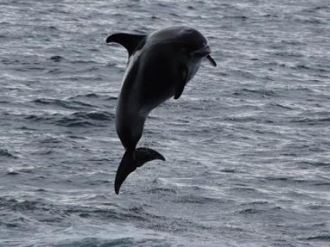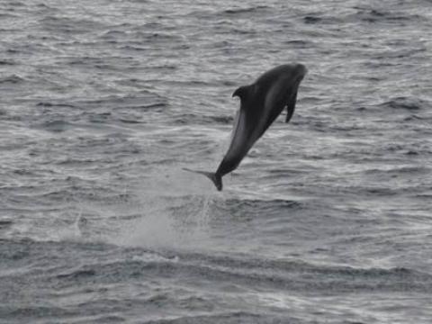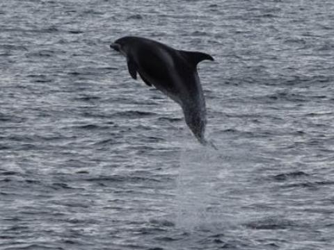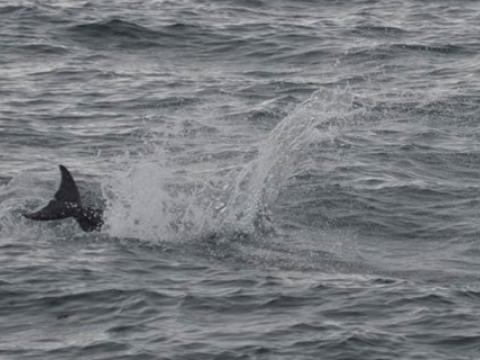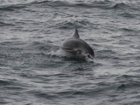 Report from Hafsúlan: When we left the harbour for our first tour today the bay greeted us with quite nice sighting conditions: not too much wind and a nice light cloud cover. And so we headed out and were soon busy trying to decide which of the 2-3 pods of White-Beaked Dolphins to watch. Overall, there must have been at least 15 individuals in the area - some of them close to us and others further away. But we clearly chose the right group to watch, as we were soon entertained by a very active baby dolphin and larger individuals leaping, breaching, slapping different body parts onto the water and surfing through our wake! As if that show had not been amazing enough we then found a Minke Whale a bit further along and got to enjoy another incredible show. This time it was the minke whale lunge-feeding at the surface. Not only did we get to see this individual racing through the waves, but it came out of the water far enough for us to get great looks at what was almost its whole body. The expanded ventral pleats along its underside had a bright pink colour and made this feeding animal look almost unreal. An amazing ending to an absolutely fantastic tour!!