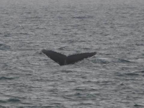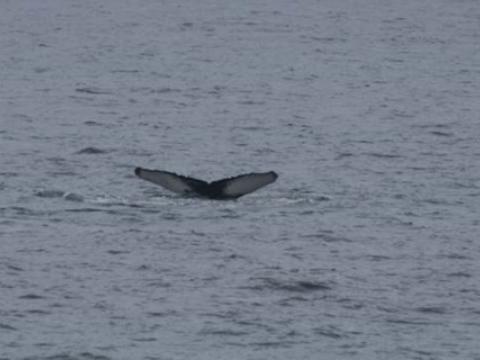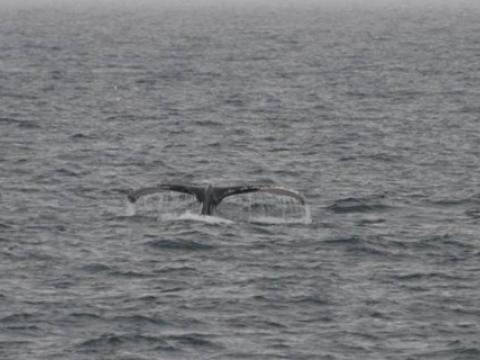 Report from Hafsúlan: We sailed out into a beautifully calm evening with very good sighting conditions. After hearing about the tour at 14:00 we were not expecting to find all that much in the bay, but we were in for a surprise... A Humpback Whale-sized surprise! =)) As we followed this individual around we didn't have time to really look at the pod of 3 White-Beaked Dolphins that surfaced quite close to us before heading in a different direction. In the beginning the humpback made it a bit difficult for us to get the nice look at its fluke we had been waiting for, but later on we got multiple chances to take a look at the unique pattern on the underside of its fluke. It also surprised us quite a bit by surfacing right in front of the boat with one of its forceful blows once. After a short but unsuccessful search for the dolphins we had seen earlier it was time to head back and we enjoyed the nicer sides of the Icelandic weather again...