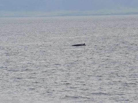 Report from Elding: The weather this morning was beautiful and after about 30 minutes sailing we spotted splashes in the distance. When we got closer we could see that the splashes were made by breaching White-beaked dolphins, and all in all there were probably around 10-15 individuals spreaded around the area. They moved very quickly and seemed to be in a lot of hurry, but we still managed to watch them for some time. After we headed further out we spotted 2-3 Minke whales. We got a good look at the animals but they all seemed to be quite elusive, maybe very busy feeding. The sun was shining as we headed back to the harbour after a good tour, hopefully we will also have some luck in the afternoon. - Freydís Ósk