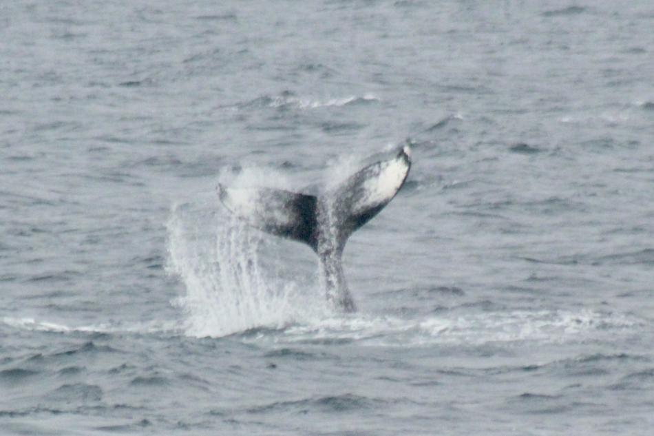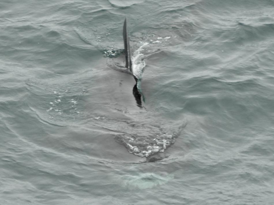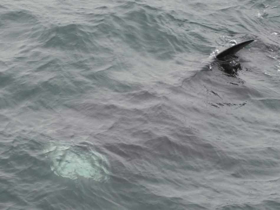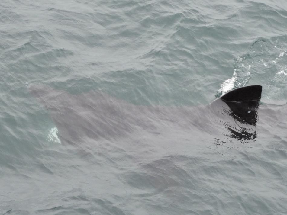 Report from Hafsulan: This afternoon, the fog was again present in our beautiful bay but that didn't stop us from sailing out onto the ocean. Even though the conditions to spot these animals were not the best, we found a blow in the distance that turned out to be a humpback whale. This whale was very focused on having a late lunch so it stayed in the surface for a few minutes before going down for a deeper dive. However, every time it did it it showed us its beautiful fluke. In the area, we found also 3 minke whales that were also feeding close to this whale. Even though these whales are normally more elusive than the humpbacks, we could take a good look at them every time they went to the surface to breath. It was special to have the minkes on either side of the boat to watch while waiting on the humpback to resurface. With multiple surface sequences and flukes galore we waved this humpback and minkes goodbye and went to see who else was around. On the way back we had a special surprise treat as we spotted a beautiful basking shark!!!!! We could clearly see this beauty through the water and were able to have continuous viewing. After basking in this sighting, we waved goodbye and headed back to port. What a wonderful tour!