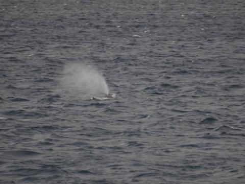 Report from Hafsúlan: The wind had really picked up over night so we decided to go from Grindavik, our passengers took a 45 minute bus drive to where our boat was and from there we got shelter from the Reykjanes Peninsula. We sailed East first but there was not much to see in that direction, birds were even few, so we headed further offshore and sailed past Grindavík and went west. After 20 minutes of sailing we saw a big blow, YES!! Humpback Whale, we saw it surface many times and it even brought up its beautiful fluke too. Then we noticed that the pattern under the fluke was different, there must be two Humpback Whales here. Just after I anounced this on the microphone the two surfaced together. Time was running out then and we had to start heading back to Grindavik. Slow start but great ending on a windy tour from Grindavik.