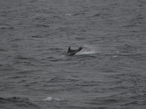 Report from Eldey: A blustery day today on the bay but we traveled with it for the first half of the tour so we did not feel it so much until later on in the tour. After 40 minutes we saw our first pod of 3-4 white-beaked dolphins. They leaped right towards us, came to say hello. It is always incredible when wild animals choose to come close to us and these dolphin did that. Heard us from a far and come leaping. The played under and a round the boat for a while before chasing fish, there movements became erratic and unpredictable, difficult to follow so we left. After another 20 minutes we came and saw another pod of about 8-10 white beaked dolphins, these had no interest in us, busy feeding and traveling. We searched for whales but none where seen unfortunately. We did see some interesting birds also, such as the sooty shearwater, which we don´t see very often, maybe a couple of times a year and lots of gannets, fulmars and seagulls. A wet and windy tour but our passengers nonetheless come back with a big smile of their faces.