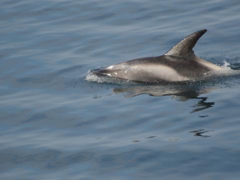 Report from Hafsúlan: Clouds joined the party on this tour, but we still enjoyed an almost mirror sea. Only about 20 minutes after our departure, we had the surprise to find a group of 10-12 white-beaked dolphins very close to Reykjavik. The pod was very calm, surfacing a lot and moving slowly, the animals were probably resting. Still they came very close to us, passing beneath the boat two times. It was very pleasant to see their white patterns underwater, as they stayed close to the surface. We also had magical moments when the whole pod surfaced together ! After a good time looking at them, we went further offshore to look for minke whales, only to find more white-beaked dolphins ! We met another pod of 5-7 individuals, with two calves, that even showed us some impressive leaps. Shortly after that, we found several minke whales (5-10 individuals). It was hard to tell how many they were, as they were surfacing all around the boat in far distances. One of them approached us very closely, 20-30 meters away from the boat, allowing us to hear its powerful blow and take a good look at its dorsal fin. Following this individual we spotted additional minke whales and white-beaked dolphins together ! All of this was displayed in a splendid panorama, mixing blue, gray and whites colors on the landscape. An airplane or perfume commercial could have been shot there ! Our awe did not stop there, as on the way back more dolphins and minke whales showed up in the surroundings. What a tour !