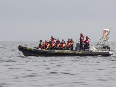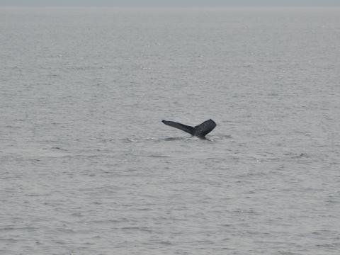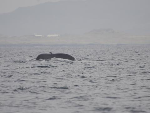 Report from Hafsúlan: We headed out in great weather, the sun warmed us up at the pier and the clouds welcomed us further out. When we entered the main whale spotting are we spotted at the same time a minke whale to our right and a small pod of white beaked dolphins to our left. We decided to start with the dolphins since they were heading towards the area where the minke was and work our way slowly to the minke. There we stayed until we heard a report from Elding that they'd spotted a humpback whale on their way out from the docks. We headed towards them and when we caught up with them they pointed us in the right direction and left so as not to disturb the animal to much. The humpback was very agile and heading out of the bay doing screws and zig-zags along the way. This trip received a huge round of applause and happy faces on the way back to harbour.