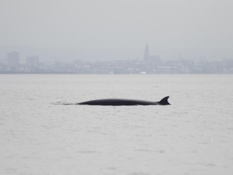 Report from Elding: This afternoon tour started rather quick, because a very observing passenger spotted an animal just as we were leaving the Reykjavik area. It turned out to be a humpback whale traveling and feeding very close to the harbour. Everybody got very excited and so we stayed for a while to see it surface several times, watching it lifting out it's large incredible fluke, just as it was going for multiple dives. We even managed to spot the animal again in the end of our tour. After our first encounter with this humpback whale we went on looking for other cetaceans. This didn't take long, as we encountered a large pod of white- beaked dolphins, which appeared to be very calm. Especially the juvenile animals and calves seemed to be very interesting in our boat, going from side to side many times. At some point we wanted to go on and spot other marine mammals, in that moment, as we were turning the boat, a minke whale came up 300 meters away from the boat. During the rest of our tour we encountered several more animals, also 3-5 harbour porpoises on our way back to the harbour. With this we completed all the four main species we tend to see in the Faxaflói bay during the summer months, leaving our passengers as well as the crew with an long lasting experience. Estimating 15-20 white- beaked dolphins and around 4-6 minke whales.