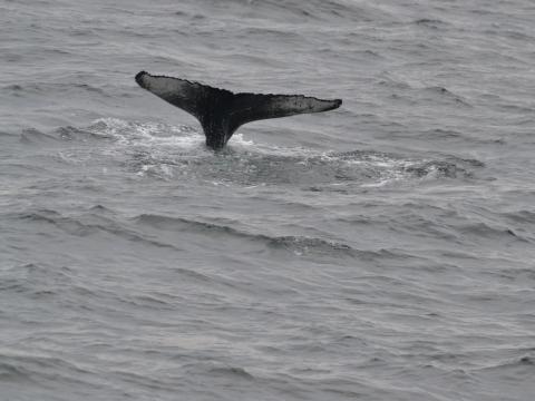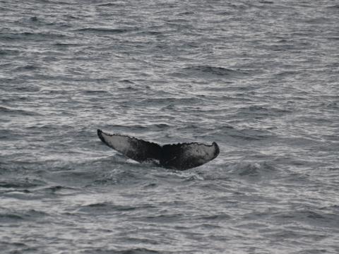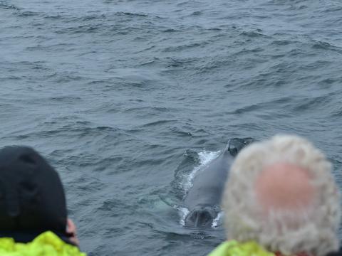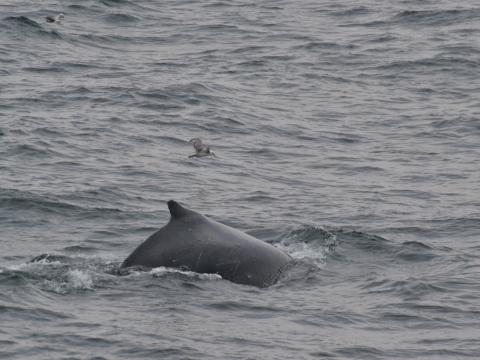 Report from Hafsúlan: Finally some sun and some warmth ! After days of rain and wind that felt like weeks, we got treated with excellent temperatures. Absolutely grateful about how much we were blessed, we set sail in a good mood. Quickly we spotted a pod of 4-5 white-beaked dolphins. They allowed quite nice looks but we did not stayed for long with them as we heard news from other species. After a long time traveling further offshore we finally found a humpback whale. It was "þröstur" again, resting and surfacing lazily. Because of its lack of motion, it was really easy to follow him. Then he got a boost of energy and suddenly breached right in the front of the boat ! It was an impressive leap where the whale took over 60% of its body out of the water. Having to refuel after this exercise, the humpback began to feed. In this time we surrounded by huge flocks of sea birds, but also by a lot of minke whales. There was about 7 of them surfacing all around the boat, more or less close to us. So it was a whale festival ! A light rain greeted us when we headed back to Reykjavik, but nothing could harm our joy after such a good trip.