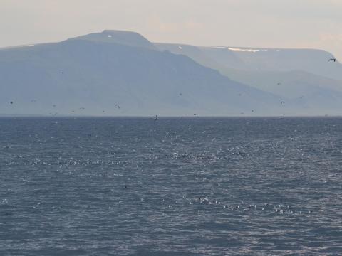 Report from Hafsúlan: Somehow we´ve been treated to some amazing weather. After our amazing tour this morning our expectations and hopes were so high. We steamed directly out to the humpback in the bay. It seemed like no time at all until we were surrounded by massive flocks of birds, 4 minke whales and a humpback whale called "Þröstur". They were all busy feeding and lunging really close to the boat. We spent the next 45 minutes surrounded by these beautiful animals. Eventually we had to make our way back in to the harbour but what an awesome tour!