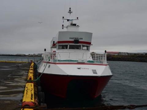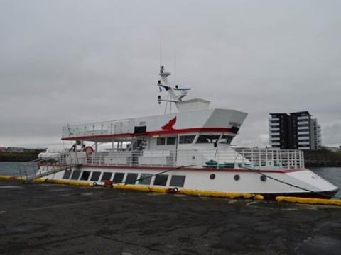 Report from Hafsúlan: It was grey and rainy as we left the Reykjavík harbour this morning, however, the wind was not as strong as forecast. We sailed through various areas, found a few birds, mostly seagulls, fulmars and gannets, but no whales. At one point, two harbour porpoises surfaced quite close to us about three of four times but they disappeared shortly after and few people managed to see them. So after a disappointing tour this morning, we gave out complimentary tickets to our passengers and hope to see them and the whales soon again.