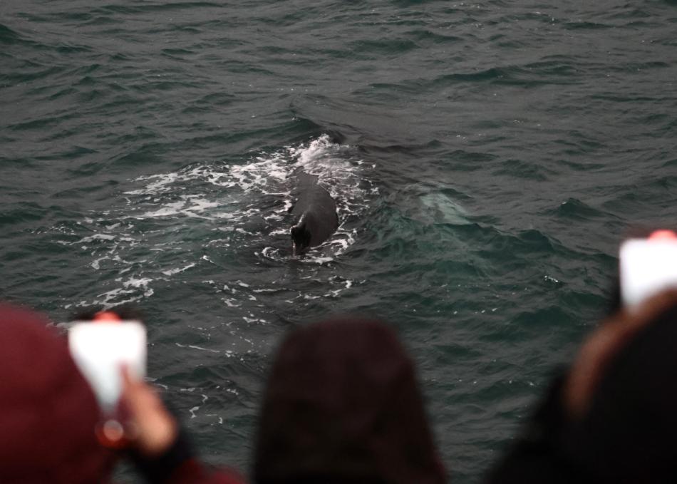 Report from Eldey: The big red boat left the harbour under a cloudy sky, a bit of rain and a bit of wind. We were expecting not to go too far from the shore since we have been pretty lucky with the previous tours, so we stayed around the islands of Reykjavík and it paid off! Soon we saw the profile of a humpback whale "behind" Videy! At first, it seemed quite shy, doing long dives and swimming for quite a distance, but our fishfinder said there was a huge school of fish just beneath us and so we stayed put. It paid off once more, the gentle giant popped up right next to us and came even closer. From there we could observe its white pectoral fins and after arching its back, the huge fluke! We stayed with this individual for around 30 minutes before going for a sail to other places. We ended up in the harbour after a few swells started to swell around.
