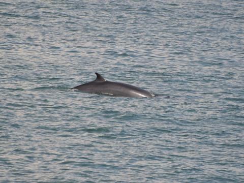Report from Hafsúlan: This day started with perfect whale watching conditions - sun shine and smooth sea conditions - and so we left Reykjavík with a fully booked boat. It took not even 30 m to find our first minke whale. It wasn't shy at all but kept surfacing around us and gave us some really nice looks. We could stay a while before we decided to move on; and after only a few minutes we spotted a pod of 6 white-beaked dolphins traveling at high speed. We could watch them for a while but they were difficult to follow. So we moved on to the minke whale that we spotted a little further away and got some amazing looks at is when it surfaced right next to our boat. When we heard about another pod of white-beaked dolphins from another boat, we tried to get a better look at the dolphins and finally got to see a group of 6 white-beaked dolphins including 3 tiny baby dolphins surfacing closely besides their mothers. I've never seen so small white-beaked dolphins, they were adorable to watch. On our way back to the harbour, we also came across another minke whale.