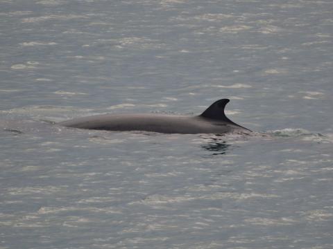 Report from Hafsúlan: The sea conditions and the weather stayed fairly constant today, so we could still sail out in a perfectly calm sea this afternoon. And like this morning, we didn't have to sail out very far to spot cetaceans. First, we spotted two minke whales traveling together very close to each other. This is very uncommon since minke whales are known to be solitary animals. But these two stayed together and we could watch them surfacing synchronized. As we moved on, we kept spotting minke whales all around us in some distance and some of them rather close to us. It was the tour of the minke whales, we even came across a second pair of minke whales that seemed to be staying together. After all the minkes, we tried to also find some white-beaked dolphins and found two pods of 4-5 animals each. However, they kept some distance to us and changed their directions frequently which made it hard to follow. So we decided to leave them alone and turned slowly back to the harbour. Even though the dolphins were a little shy, the minke whales made this tour truly special!