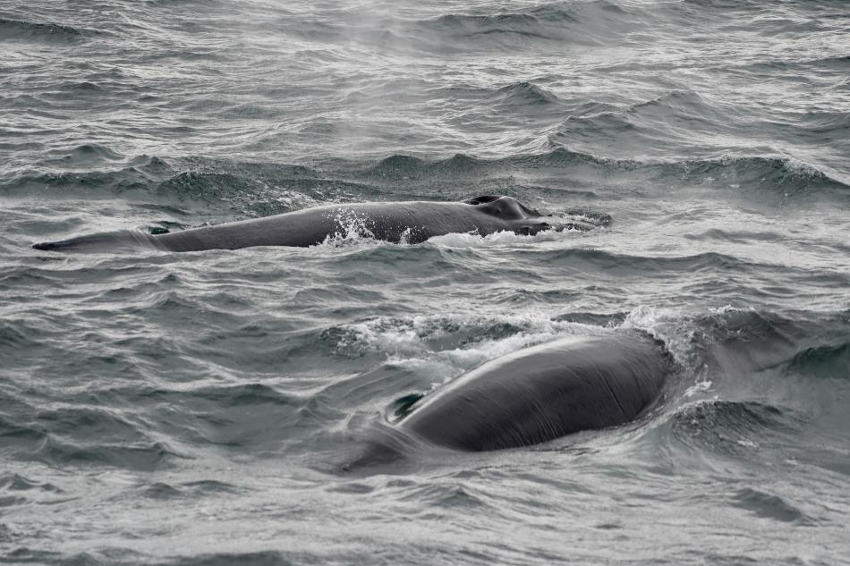Report from Eldey: We set sail this morning into moderate waves with heavy clouds overhead. After a bit of searching We found a pair of humpback whales! They were travelling the bay so we stayed with them for part of their journey. We then moved onwards to find a second pair of humpbacks! First they were feeding, going on nice short dives, lifting their fluke nice and high. With their bellies full, they then decided to go for a nap, side by side. We enjoyed the sight of these resting animals until it was time for us to go home again and conclude our morning out at sea.