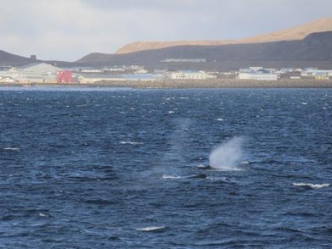 Report from Hafsúlan: What a day, Humpbacks and Dolphins! We decided to go from Grindavík today due to the brewing storm that has already taken over Faxaflói Bay. The other side of the peninsula provided nice shelter from the northerly winds and so we took our passengers on a nice little bus tour to where our boat was docked. We had a fantastic time as just 5 minutes sailing from the harbour we came across our first cetacean, a pair of humpback whales side by side. They were incredible, they surfaced many times and as they went for a deep dive they brought up their magnificent flukes. After a while of watching these guys we could see another individual in the distance and a we were pretty much heading in that direction anyway we just slowly and steadily moved with the pair until we had all thee very close. Later in the tour we wanted to see what else was a round and after another 5 minutes of sailing we came across a large pod of White-beaked Dolphins maybe 30+ but it was very hard to know for sure as they were here there and everywhere. 2-3 leaping and 11 o´clock, 3-4 surfacing fast at 2 o´clock they were just everywhere and eventually bowriding and surfacing within a meter from our boat. What a great ending to the tour you would think but actually as we started to head back to the harbour, which was only about 10 minutes away we saw the pair of humpbacks again as they wonderfully lifted their flukes in the autumn sun and another humpack whale (yes a fourth humpback whale) just a couple of minutes from the harbour. All in all, with the wildlife, landscape and setting sun it was a trip to remember.