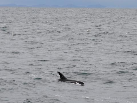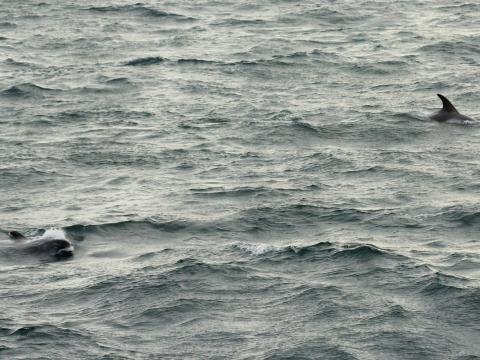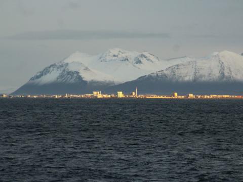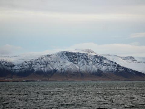 Report from Eldey: What a beautiful morning we have had today. Firstly, the sun was coming in between the clouds creating extraordinary reflections in the sky. Secondly, the mountains around Faxafloi were covered with a layer of snow that made look like cakes. And thirdly, wildlife! We searched for a while until we came across a big flock of birds to discover that among them there were at least 6-8 white-beaked dolphins actively feeding. They were very curious about us so they were checking us constantly and we could even see a mother-calf couple swimming together. This group was so characteristic that we identified one of their individuals, in this case was "Skywalker", a well-known dolphin as it has been with us every year since 2008, what a discovery! The way back was fantastic and we enjoyed incredible views of Kollafjordur.
