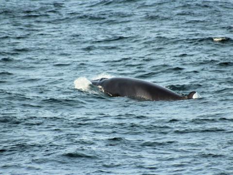 Report from Eldey: Clouds went away and we were sailing under blue sky through flat sea surrounded by outstanding landscape. Air was so clear that our visibility was reaching Snaefellsjokull mountain and following our intuition we were sailing in that direction. It was a long ride and not much was going on till some big flocks of birds appeared on the horizon and then we saw a blow. It was a minke whale. First individual surfaced in the distance in front when second came up on our side and a pod of 6-8 white-beaked dolphins on the other. Soon we found our selves surrounded by wildlife and it was hard to decide in which direction to look. In total we had 4 or maybe more minke whales swimming around, some of them very close to us, surprising us with their loud blows. After good time with whales we decided to give some attention to dolphins and we noticed again our good friend Skywalker between them and a tiny cute calf. What a day!