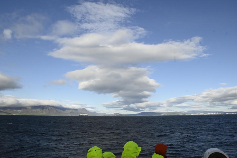 Report from Eldey: The sun was shining down on all of our happy and relaxed faces and we enjoyed a nice but very windy sail out into the bay. W sailed towards Akranes, a city to the north of the capitol. We sailed and we sailed and looked and looked but the whale were extra sneaky today. We admired the beautiful landscape with its majestic mountains and enjoyed some cool bird facts but had trouble spotting any cetaceans. But then towards the very end of the tour, when we were almost on our way back and had almost given up hope we found a small pod of 4-6 white-beaked dolphins with one juvenille. These dolphins swam around the area and one even slapped its tail repeatedly on the water. Unfortunatelly, we ran out of time and had to turn back towards the harbour. Due to the very short sighting of the animals we decided to give out complimentary tickets for a chance to come back again.