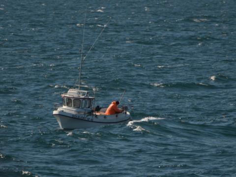 Report from Hafsúlan: The weather was deceiving this morning, close to coast the sea looked nice and smooth but once we traveled 20-30 minutes off shore the winds picked up in the open and the sea conditions became rougher. The bird life was the most noticeable this morning, obviously indicating a plentiful bay. It was a flock of plunging gannets that showed the way to the first minke whale. As it was feeding it was very difficult to predict where and when it would surface. The bay was full of food, sun was shining and the visibility endless, so there was always something to enjoy; birds, whales, landscape. The wind was very cold though so our passengers made use of the free overalls we offer on board. We must have seen at least another 2-3 minke whales during the tour and one at the end surfacing very close which ended the tour nicely. Despite the cold wind it was great to be out on the water.