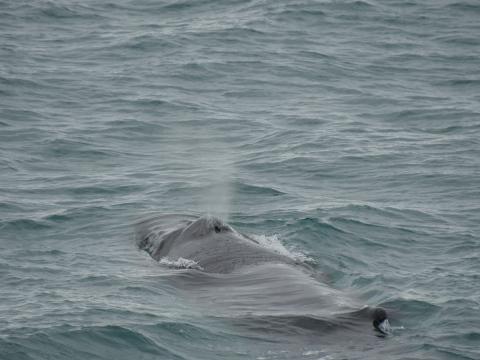 Report from Eldey: We had a beautiful, mostly overcast morning. The missing bright sunshine and calm sea actually provided perfect conditions for whale spotting. Just after leaving the harbour we already spotted a small pod of 12 white-beaked dolphins, heading towards the lighthouse Grotta. Those animals are very commonly seen in Faxafloi due to its richness in fish. So it was no surprise to find the pod feeding and moving around very actively and quick. We followed the pod around for about 20 to 30 minutes, before moving on to explore further into Icelands largest bay. It did only take us another 40 minutes to encounter our second sighting of the day: a humpback whale. Even though it was a different individual than seen the previous day, the animal was moving solitarily through the waters in the north of the bay. It seemed very calm and relaxed and we were able to enjoy some beautiful fluke lifts infront of the fantastic background of the mountains Akrafjall and Esja. We were following the animal around for another 20 minutes, before heading back into port. It was another fabulous day to be at sea and we had a whale of a time, being really fortunate to spot two species of the most commonly seen ones in Faxafloi today.