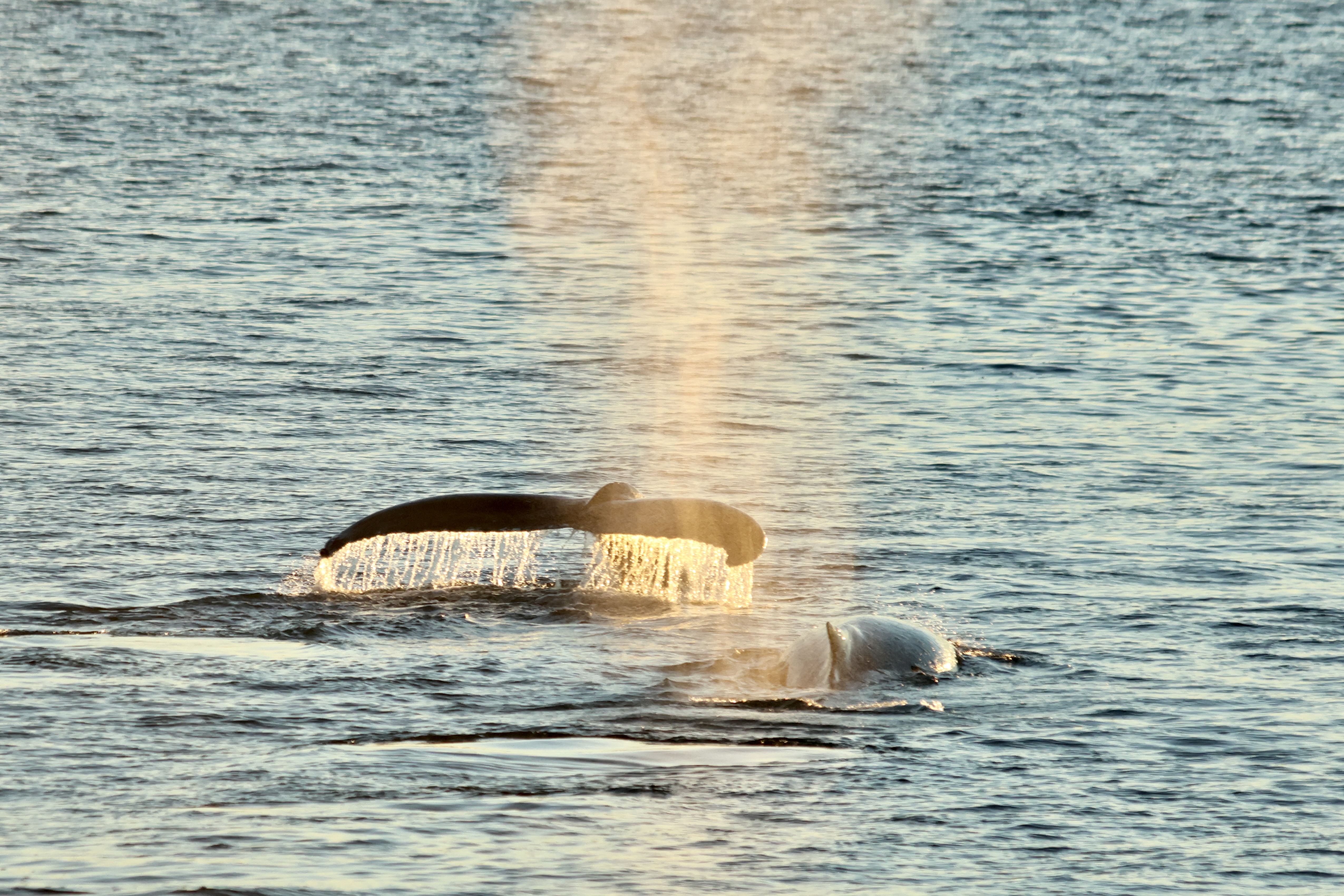 Report from Eldey: It was quite the windy, cloudy day today but luckily the wildlife was close by so we managed to stay in relatively calm seas this afternoon. It did not take all that long before we spotted our familiar duo of humpback whales, banana and their friend were hang out close to a buoy and so we got closer. They were very calm at first but later on they picked up their pace a bit and were going back and forth in the area, possibly feeding in fish nearby. We spent a long time with them, sometimes being lucky enough to see them from very close by as they surfaced next to and behind our boat! Eventually, we explored a bit further and we found a pod of 4 white-beaked dolphins. They first came by curiously but then decided to be not very interested in us. For a short time we observed them from a safe distance but then we let them be by themselves again. A quick stop by the humpbacks later, we sailed back towards the harbour, concluding a successful afternoon!
