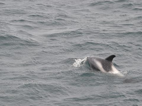 Report from Eldey: We sailed out of the Old Harbour for the second time today and we had some sun to accompany us into our adventure. We sailed about an hour before we saw some fins slashing the waves. Soon enough we were surrounded by a pod of 6-8 white-beaked dolphins. They played around the boat and we were able to see their large torpedo shaped bodies underneath the surface. It was a nice afternoon that we spent with these sentient mammals and we enjoyed every second of it.