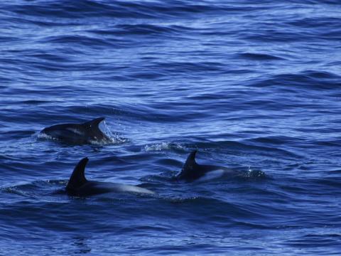Report from Hafsúlan and Elding: Due to a high number of passengers we went out with two boats on todays whale watching tour. The weather was just incredible today with little to no wind and a clear sky with sunshine. The air was cold however so we kept warm wearing the red overalls that we have onboard on all of our vessels. Hafsúlan was the boat to first locate any wildlife. A pod of 8-10 white-beaked dolphins, one individual is one we know very well called Sophie, a dolphin we see often during the winter season. were slowly milling around in one area. We could turn off the engine and just listen to the blows (exhale) and view the backs of the dolphins coming up out of the water, absolutely amazing almost like summer! Elding soon joined Hafsúlan with the dolphins while Hafsúlan continued further out scouting the bay. It were thousands of birds out in the bay today, seagulls and fulmars mainly. Whilst Hafsúlan ventured further offshore Elding found two other pods of white-beaked dolphins, one pod had two calves with them, so cute to see playing around the boat. Occasionally there were also dolphins seen breaching in the distance. It was great, all in all Elding must have seen over 20 dolphins in there multiple pods. It felt good and increased our hopes of finding something bigger. Both boats searched the bay and the next sign of wildlife was the same pod of dolphins as in the beginning of the tour. Now the dolphins were feeding and more active. We could stay a while and left with many good pictures and memories of these dolphins. A wonderful day out whale watching!
