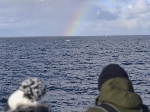 Report from Eldey: Another tour on which we had to face the full range of Icelandic weather. First it was sunny, then raining a bit in addition to the cold, rather strong winds blowing in our faces. This mixture produced quite a few beautiful rainbows though, spanning all the way across the bay. After sailing for a little while, we came into an area, where a lot of seabirds were gathering. In between the birds we found 4 minke whales! Some of them were only showing up once or twice, but two of the minke whales surfaced repeatedly around the boat, coming rather close. We were also lucky enough to spot 1-2 harbour porpoises next to our boat. When we kept going, after enjoying these encounters for a while, we could still see the blows from the whales rising above the water surface. In another area a pod of 3-4 white-beaked dolphins came for a short visit to the boat, but it was a very short encounter. Still, we really enjoyed this tour and the sunshine on the way back.