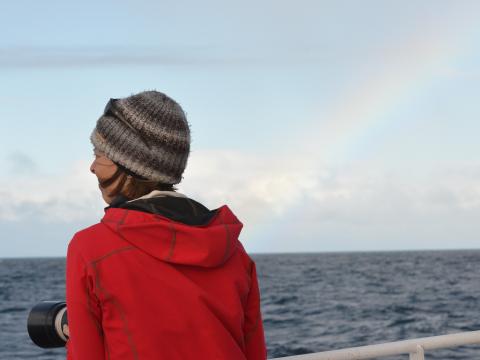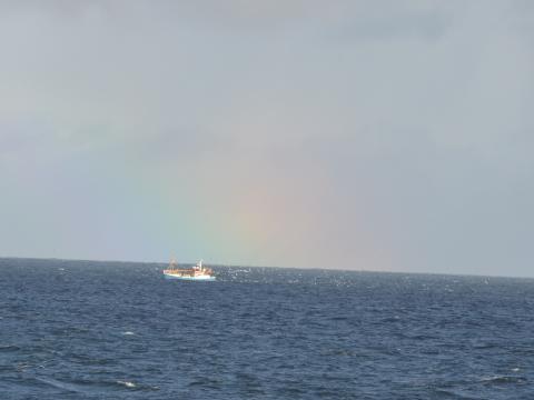 Report from Hafsúlan: We started our journey with the bus to Hafnarfjörður and there we took the boat out to Faxaflói. First we sailed along the Reykjanes Penisula with a nice view at Mount Keilir and at the cliffs near Keflavík named Holmsberg. We observed some northern gannets, some of them diving like torpedoes and plenty of rainbows. We could enjoy the sunshine more or less through the whole tour only for a short time it went behind some clouds but even then we saw the golden glare on the water. For five minutes we had a bit of rain but the Icelandic saying "if you don't like the weather just wait 5 minutes it will change anyway" came true. As our captain navigated in a way where he was considering the strong wind and the swell it felt surprisingly smooth out there and people enjoyed the time out at sea, even no cetacean showed up. Not a fin for a second, that's why we are looking forward to meet all who where on board again to get a new chance and hopefully good cetacean sightings next time. After this boat ride the bus waited in Hafnarfjörður to get everybody back to Reykjavík.