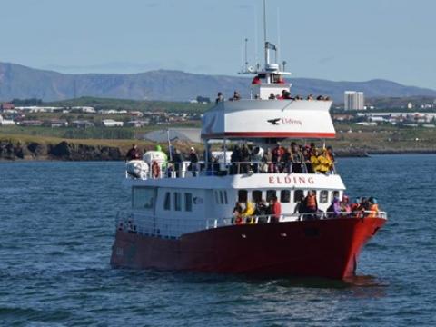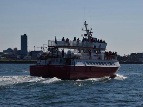 Tour at 14:00Report from Elding: we sailed out into the bay but we had sailed for less than half an hour when we got a great message from our co-workers on the Videy ferry to the effect that a Humpback Whale had been seen close to Videy. We turned the boat around straight away. As we arrived, the whale had not been seen for a while by the boats already present. We joined the search for it but realised that this would be tricky, not only given humpback whales' ability to dive for long but also that this individual did not seem to be about to sell itself cheap. Then another boat found it inside Iceland's busiest cargo harbour in Sundahöfn, just next to Videy, so we went there; when we came, it had just gone down after being seen close to our other boat, Elding II. On went the search and next time someone spotted it, it was next to the boja outside the harbour but once again, all boats lost it. This play of cat and mouse continued for a while more; we searched far and wide around the islands but eventually we had to give up and head back to Reykjavik. All passengers were offered a complimentary return ticket as a result that they can use for any of our whale-watching trips within the next two years.