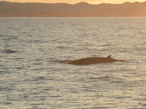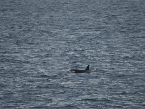 Report from Eldey: Increased wind from the east made a little colder on this afternoon's tour however it did not make it any less beautiful. The winter's warm evenning glow spread over the mountains and shining rays through the clouds. We had a nice variety of seabirds throughout the tour that drew our attention whilst we searchered for larger sea mammals. We traveled to the same area as the minkes from the morning tour but instead we found 3 killer whales. Young male, young female with possibly her calf. They seemed to be teaching the young one to hunt as they terrorised the resting swimming eider ducks, flying off all of a sudden asthe orca's stealthily swam beneath. It was a strange behaviour they were exhibiting and it was ony the sight of errandic breaching dolphins that gave us the suspision these were probably marine mammal eating killer whales, that we don't see very often around Iceland.One killer whale even had tooth rake marks on its body, maybe from being boustrious with other killer whales. Herring eating killer whales are the main ones here. We will do some research and hopefully find out more information about them soon that we will post on our social media. We then went looking for the dolphins but they were long gone, We sailed home and had a stunning rainbow formed with our smiles.