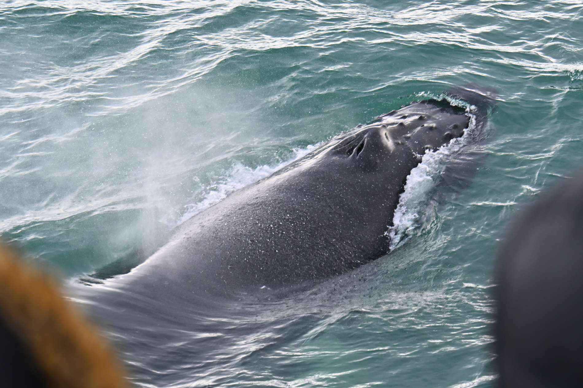 Report from Eldey: This morning, we had great conditions for smooth sailing. The wind wasn't too cold, the rain was very light and visibility was in our favour as well. Throughout the trip, we kept encountering harbour porpoises, totaling in 10 porpoises sighted on this trip. These guys are usually quite shy, but we had the chance to take a good look at a few very brave ones that were swimming close to the boat. We arrived at a very busy area full of birds, 4 minke whales and around 10 humpback whales feeding. Our captain Otto reported that our fish finder picked up on a LOT of fish which is great because we love observing feeding whales! Among the birds, we also started seeing more and more puffins, getting us excited for the puffin breeding season coming up very soon. We returned home with the sun shining on our faces and happy with such a good tour!