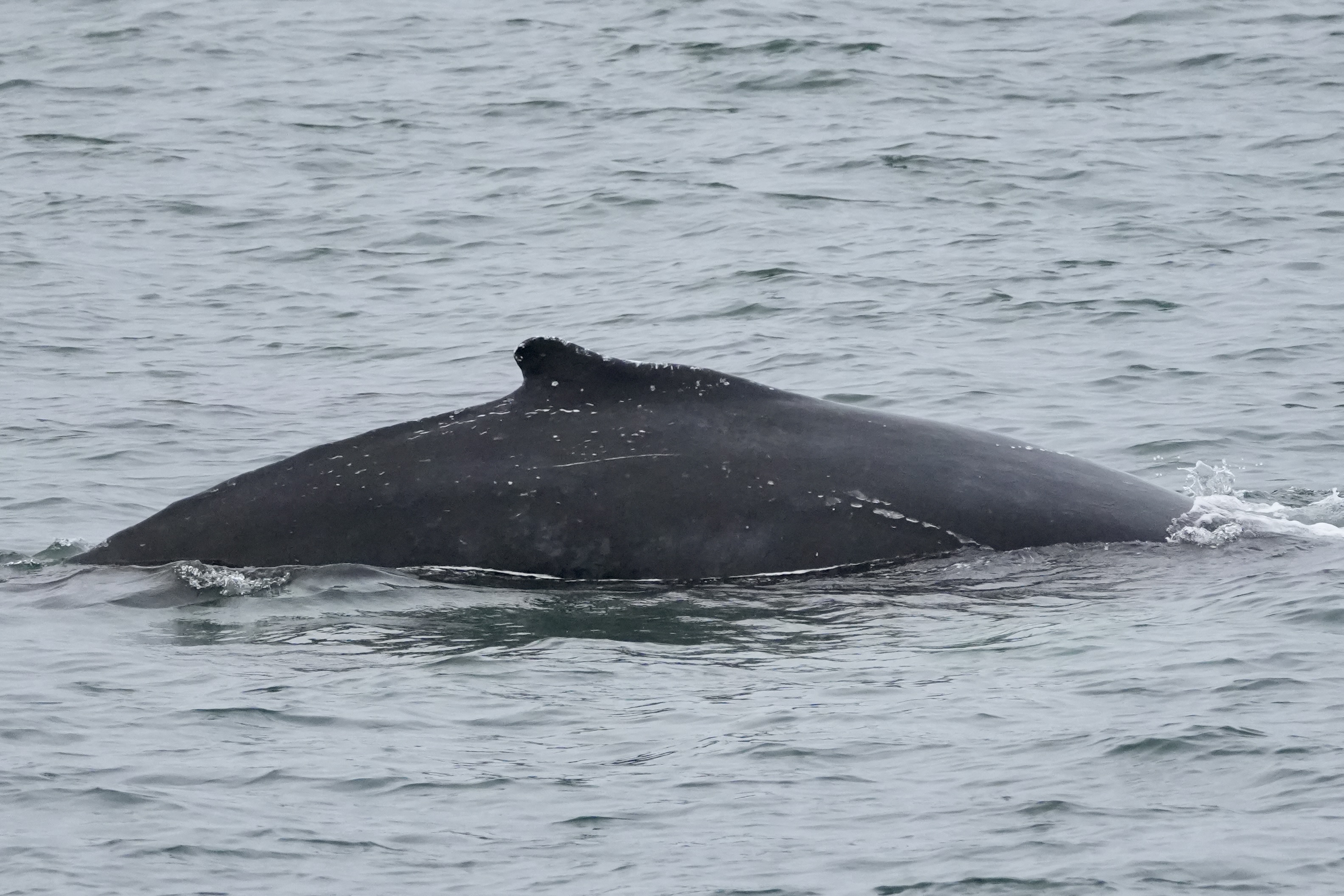 Report from Hafsulan: Today we were incredibly lucky to find multiples whales right outside our harbour! This meant we had to sail only a few minutes and got to enjoy near-flat seas and a gentle wind, despite the foggy air. During the tour we spotted 4 minke whales, all very busy feeding in the area which allowed us to see them come up often as they were seemingly unbothered by our presence. The stars of the show were however a pair of humpback whales, slowly swimming only a few hundred meters away from the harbour walls! We spent a lot of time with them as they cruised around slowly, so we could take in their majestic beauty. This morning really was the perfect trip with multiple whales and the city as a backdrop!
