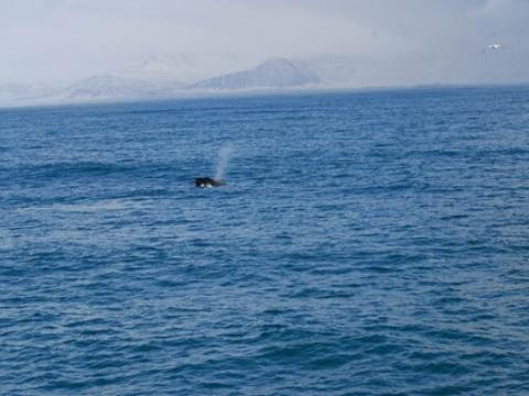 Report from Hafsúlan and Elding: A surprise snowfall greeted us this morning as we were given another dose of winter, but the sun was shining too so we had a beautiful scenic day. The sea didn´t match the sky though and the sea conditions were quite swelly, we certainly had an adventure as we sailed out of Reykjavík. And it would take us just over an hour to spot our first species, we found a Minke Whale! This first minke was quite elusive and after surfacing a few times disappeared and wasn´t seen again. We would find at least 3 minke whales during the tour with other seen in the distance, the second one was the best as it surfaced within 50m of the boat a few times before diving down. While we were looking for the whales on several occasions we found pods of Harbour Porpoise (3-5 in each) too but they were quite elusive as usual. The highlight of the tour had to be the bird life though, we were surrounded by Northern Gannets all dive-bombing the water around us. They were a spectacular sight to watch! The sailing back to Reykjavík was much smoother as we sailed with the swell, so we had a comfortable end to the tour.