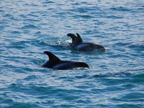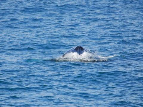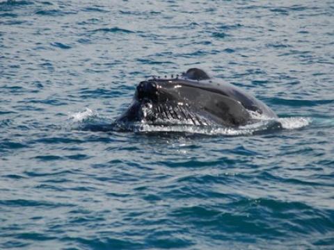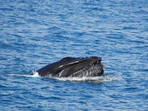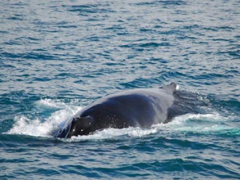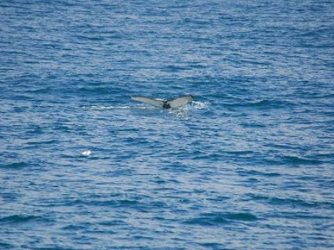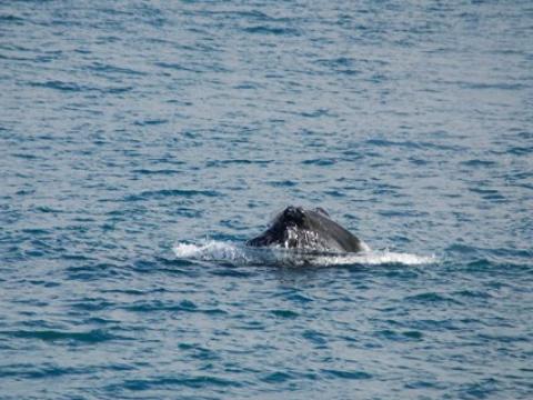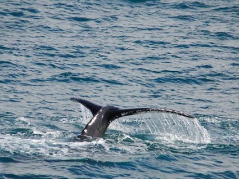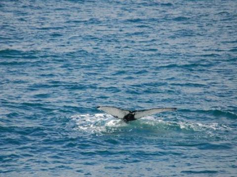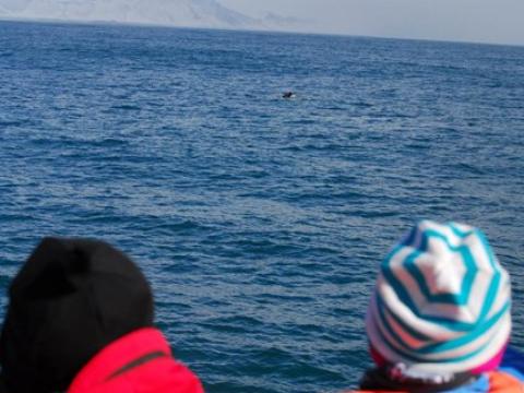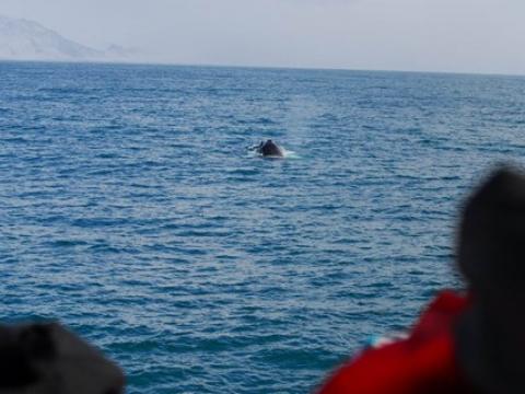 Report from Hafsúlan and Elding: The afternoon tour began with more snowfall, but this would soon turn into blue skies and sunshine! You know what they say about Icelandic weather... And the tour would turn out to be great too, it was a four species day! Our first two species were the same as in the morning, we spotted a Minke Whale and some Harbour Porpoises. The porpoise were quite calm and content around us but the minke was still being elusive. We moved on and found two other species that would put on a great show! We found a large pod of White-Beaked Dolphins, 30+ i would say and they were incredibly entertaining! The dolphins were swimming alongside us and underneath us. Then a Humpback Whale which turned out to be Gills, named because of the black lines radiating from the center of the fluke pattern. We have seen Gills now on at least 5 days in April and it was first calalogued in the North of Iceland in 2012. There was also great news from our Elding boat that was in a different area that had the Minke Whale, Humpie. A minke seen on many of our tours last summer. It is incredible to see all of our returning whale safe and sound for another year. The humpback was constantly lunge feeding beside our boat! It was a mesmerising show and one that won´t be forgotten soon!