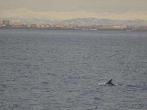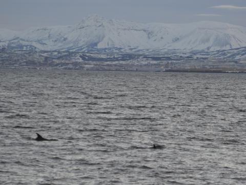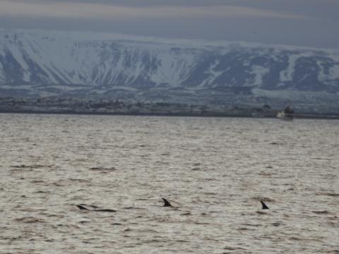 Report from Eldey: We had very good conditions today with the sun shining beautifully on the surrounding landscape. The last couple of days has really given us nice weather and amazing landscape, only that making it worth going out on the tour! Today we hadn't sailed for long when a passenger spotted some fins in the water on one of our sides. It was a pod of 8-10 white-beaked dolphins. It was a nice pod of dolphins containing at least one calf and two younger dolphins. On several occasions they swam underneath the boat and came up really close. It was a hard time leaving these dolphins but we wanted to search further out as well. The wildlife further out was very calm, only some seagulls that kept us company. We returned to harbor with a gloving red sunset behind us. It was very nice to be out whale watching today! This guide is now leaving for Christmas celebration at home but join the next tour in the good hands of our many awesome guides. Merry Christmas!