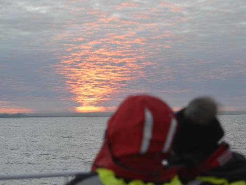 We are sailing out today from the Reykjavik Old Harbor. We expect waves between 50 and 75 cm with an eastern wind between 2 and 6 m/s. A semi clouded sky with little to no precipitation.