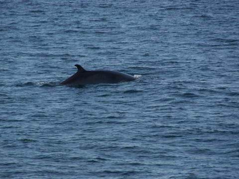 Report fron Hafsulan: We headed out the harbour with a great visibility and the sun shinning. Before we arrived to our spotting area we saw a lot of activity on the surface, at least three flocks of birds were in front of us so we decided to go there. Really optimistic we found a minke whale just in front of us, it came up to the surface two times so we decided to stay longer in the area, it was an spectacular scene seeing the northern gunnet "plunge diving" or the artic skua trying to steal the food from another animals, also we saw a lot of manx seawater and the atlantic puffin. Suddenly one minke whale showed up next to our boat three times and our passenger got the opportunity to take good pictures. In our way back we saw how it was rainning in Reykjavik but not where we were so we enjoyed an beautiful saling back.