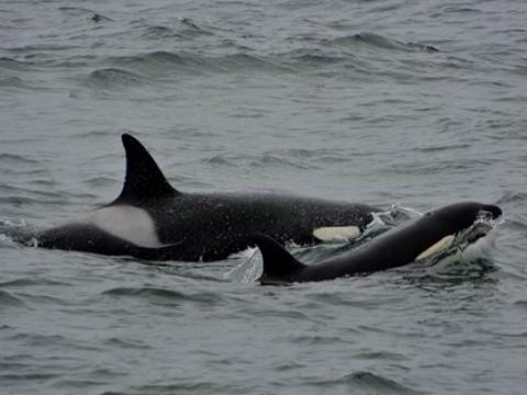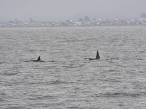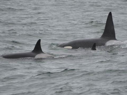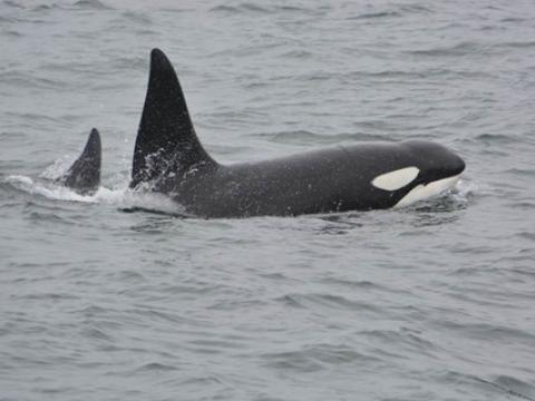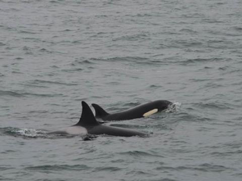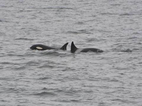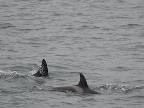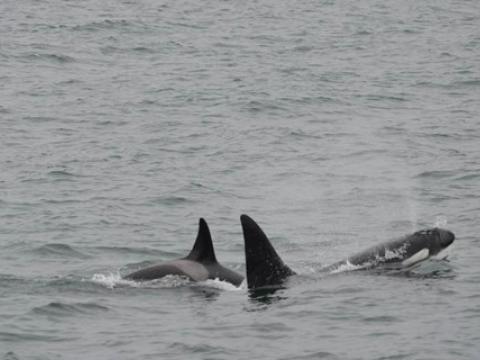 Report from Hafsúlan: We sailed out into a cloudy Bay and headed further south than usual - trying to catch up with the killer whales we had seen on the second tour of the morning. And even though they had been traveling very fast we managed to find the group of 4 Killer Whales! What an amazing experience to see them leisurely swimming parallel to our boat... There was a male with a huge dorsal fin, two females and one fairly small individual. We followed them for quite a while and got great looks at their beautiful patterns. But after a while we decided to head out a bit further and look for something else to see. And after a while we spotted a Minke Whale - the first of about 4-6 individuals we watched over the course of the trip. Some of them surfaced quite close to the boat and we got a nice comparison to the killer whales we had been watching earlier. Among the minkes we watched we were also able to identify "Humpie" again. And additionally to everything else we also got to look at some Harbour Porpoises (around 7-10 in total) and lots of different seabirds. What an unexpected treat and incredible trip! =))
