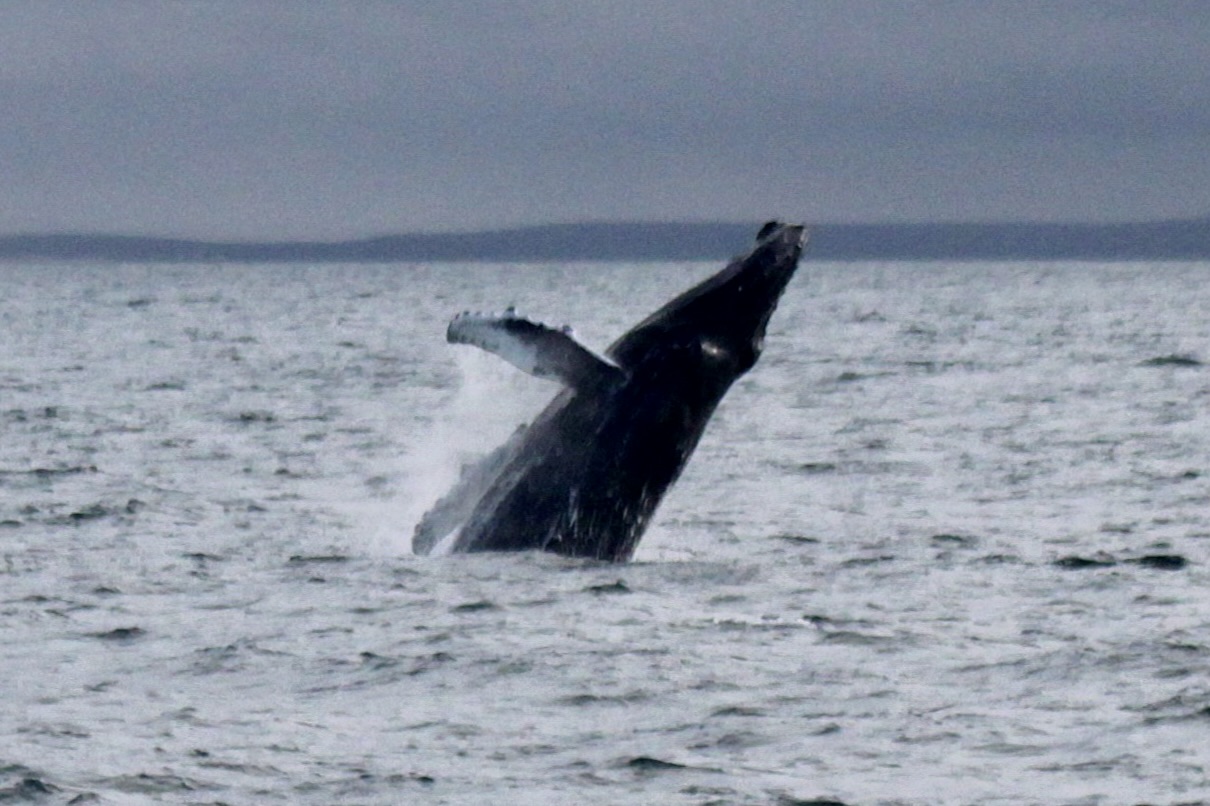 Report from Eldey: We layered up with our raingear and goggles and headed out into the bay! We did not have to travel too far before we spotted a big blow from one Humpback whale!! This whale then started to treat us right away with some pectoral slaps and it was wonderful to see those long fins out of the water! When we got closer we were able to admire their fluke pattern as it did a nice dive below. We were able to see multiple surface sequences and got to see that fluke not once, not twice, but four times!!! It even showed us some more pectoral slaps which was great to see their fins nice and close! What a lucky show we had. When it was time to make it back to port we got to see three of our harbor porpoises! They were elusive as usual so although we did not stop they gave us multiple surface sequences which was wonderful! What a great start to our day.
